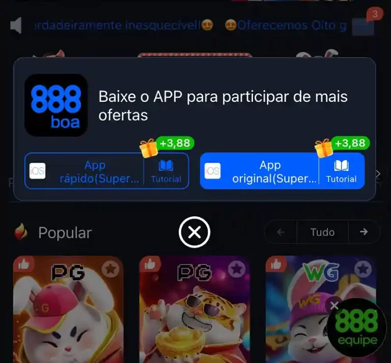 O 888BOA não é apenas uma plataforma — é o seu passe de acesso total à experiência de cassino online mais dinâmica, criada exclusivamente para jogadores brasileiros. Com cadastro ultrarrápido, métodos de pagamento locais confiáveis e uma seleção de jogos em constante evolução, você está entrando em um mundo onde o entretenimento encontra oportunidades reais. Seja caça-níqueis, crupiês ao vivo, jogos de pesca ou apostas em futebol, a ação nunca para. Além disso, com promoções diárias e notícias atualizadas compartilhadas pelo aplicativo e site, você está sempre por dentro dos últimos bônus, torneios e recursos. Milhares de jogadores em todo o Brasil já estão lucrando — agora é a sua vez de jogar com mais inteligência, ganhar mais e aproveitar a emoção do 888BOA todos os dias.